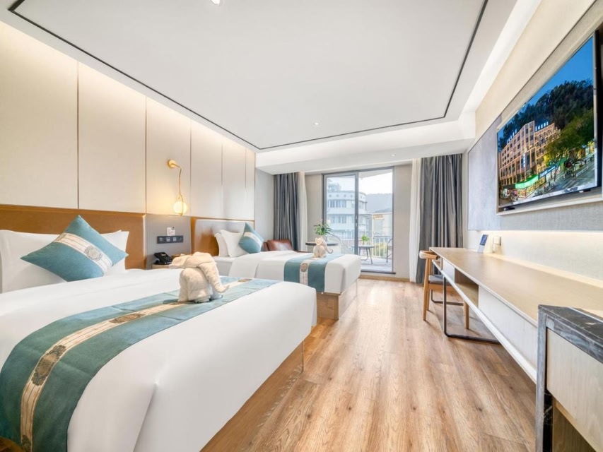 Waiting Hotel - Jiande Xin'an River Riverside has a fitness center, garden, a shared lounge and terrace in Jiande. Among the facilities of this property are a restaurant, a kids' club and room service, along with free WiFi. The property has a 24-hour front desk, a concierge service and organizing tours for guests. The rooms come with air conditioning, a flat-screen TV with satellite channels, a fridge, a electric tea pot, a shower, free toiletries and a desk. Rooms contain a private bathroom with a hairdryer, while certain rooms are equipped with a balcony and others also feature city views. The rooms have a closet. The daily breakfast offers buffet, continental or Asian options. Qiandaohu National Forest Park is 29 miles from the hotel. Quzhou Airport is 49 miles from the property.