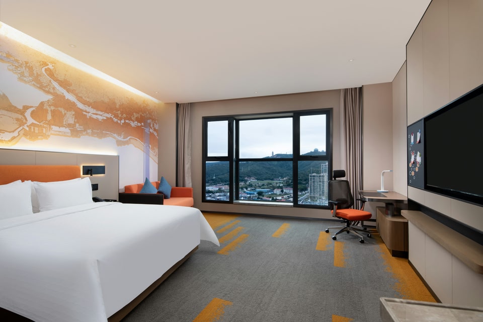 Location A great option for a journey on a budget - hotel «Hampton by Hilton Zhoushan Daishan» is located in Zhoushan. This hotel is located in 29 km from the city center.At the hotel Spend an evening in a nice atmosphere of the bar. Taste the local cuisine and have a rest in the restaurant. If you travel by car, there’s a parking zone. Sports fans are going to love a gym. Get ready for a fun and exciting vacation! Here’s what you will find on the premises: a karaoke and a library. Accessible for guests with disabilities: the elevator helps them to go to the highest floors. At the guests’ disposal, there’s also a laundry, dry cleaning, an ATM, ironing and a concierge.Room amenities The room is warmly decorated and has everything you need to have a rest after a long eventful day. There is a TV, a mini-bar and slippers. Please note that the listed services may not be available in all the rooms.