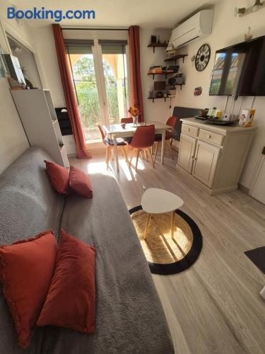 Помешкання Havre de paix appart climatisé, piscine, wifi розташовано в місті Ле-Баркарес. До послуг гостей приватний басейн та безкоштовний Wi-Fi. Помешкання розміщено за 2,5 км від пам'ятки "Пляж Де-Мірамарс".