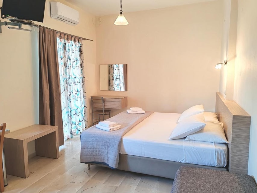 Convenient LocationLocated in the charming area of Agia Marina, Angelica offers self-catering studios and apartments surrounding a beautiful swimming pool. Guests can easily explore nearby taverns, markets, and transportation options.Modern AccommodationsAngelica's studios and apartments are elegantly decorated with modern furnishings and soothing colors. Each unit features a kitchenette, dining area, private balcony, TV, and an en-suite bathroom, providing guests with a comfortable and convenient stay.Easy Access to AttractionsJust a short distance from Souda Port and Chania Airport, Angelica is also within reach of the picturesque old town of Chania. With free Wi-Fi in common areas and nearby parking, guests can explore the area with ease.Book your stay at Angelica today for a relaxing and enjoyable experience!
