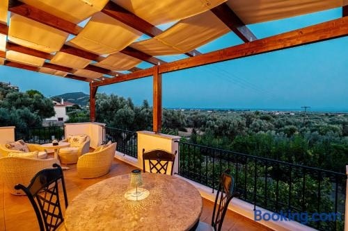 У помешканні Ostria villa, розміщеному приблизно за 3,5 км від пам'ятки "Moni Timiou Stavrou", до розпорядження гостей комфортне перебування з красивим видом на море. Також до розпорядження гостей тераса та балкон.