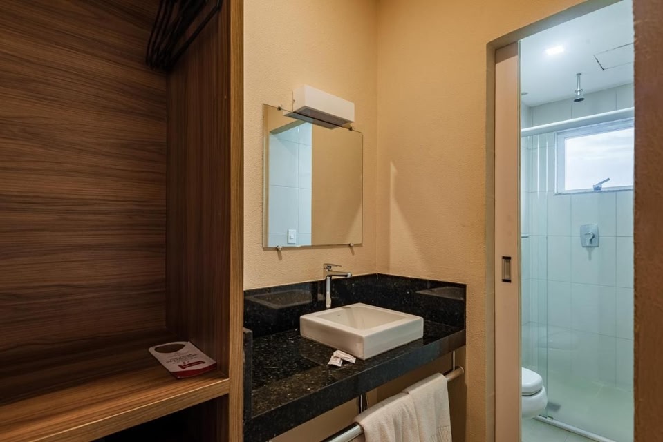 Hotel Santos Dumont Aeroporto SLZ имеет хорошее расположение — Тиририкал, Сан-Луис. Природный парк Bacanga и Amapá Biodiversity Corridor находятся в 5 минутах езды на автомобиле. Отель — вариант с прекрасным расположением: Rio Anil Shopping находится в 5,9 км, Shopping da Ilha — в 8,4 км от него. Гостям предоставляются такие услуги и удобства как бесплатный беспроводной доступ в интернет и банкетный зал. Этот Hotel Santos Dumont Aeroporto SLZ приглашает гостей в свой ресторан. Загляните в бар/лаунж и утолите жажду своим любимым напитком. Завтрак (шведский стол) предлагается ежедневно с 6:00 до 10:00 за дополнительную плату. Для удобства гостей предоставляется следующее: круглосуточная работа стойки регистрации, хранение багажа и услуги прачечной. Отель предлагает вам 2 конференц-зала(-ов) для проведения встреч и мероприятий. Предоставляется бесплатная самостоятельная парковка. Почувствуйте себя как дома в одном из 196 номеров с кондиционером и другими удобствами, в числе которых минибар и телевизоры Smart TV. Бесплатный беспроводной доступ к интернету позволит вам всегда оставаться на связи. В ванных комнатах душ и фен. Предоставляются следующие удобства и услуги: сейфы и затемняющие шторы. Уборка номеров осуществляется ежедневно.