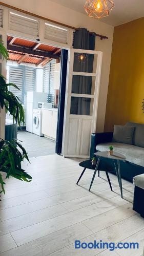 Cosy suite en centre ville — это апартаменты в городе Пуэнт-а-Питр. В распоряжении гостей терраса. К услугам гостей этих апартаментов с кондиционером спальня (1), гостиная, полностью оборудованная кухня, а также ванная комната (1).