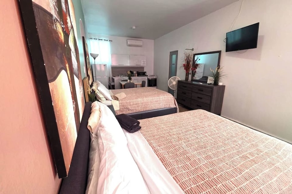 Квартира — вариант в районе Сантурсе, Сан-Хуан. Казино Del Mar в отеле La Concha Resort и Distrito T-Mobile расположены в 5 минутах езды на автомобиле. Квартира — вариант с прекрасным расположением: Пляж Condado Beach находится в 1,8 км, Конференц-центр Пуэрто-Рикоr — в 2 км от него. Этот квартира предлагает такие удобства, как бесплатная парковка поблизости и специализированные места для курения. Предоставляется бесплатная самостоятельная парковка. Располагайтесь с комфортом в этой квартире с кондиционированием. У вас будет кухня с плитой и микроволновой печью. У вас в номере будет бесплатный беспроводной доступ к интернету, а плоскоэкранный телевизор не даст вам скучать. В номере есть кофеварка/чайник и затемняющие шторы, по запросу предоставляется холодильник.
